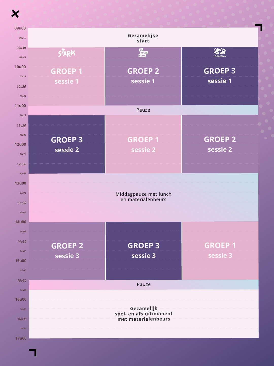 Je volgt drie anderhalf uur sessies van drie sprekers met tonnen ervaring in het aanleren van de tongpunt-r. Je krijgt ook de kans om op de materialenbeurs kennis te maken met det tools die onder andere in de sessies aan bod zijn gekomen en je kan ook met collega's ideeën en gedachten uitwisselen. Het wordt een leerrrrrrrijke en plezierrrrrrige dag.